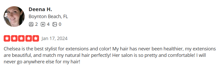 "I took an in person course and online digital course on these hidden sew in extension method and I am so extremely happy with the results! She is such a talented person and will teach you detail for a detail on every single step that needs to be done and explains it in a way that is easy to comprehend on so many levels."